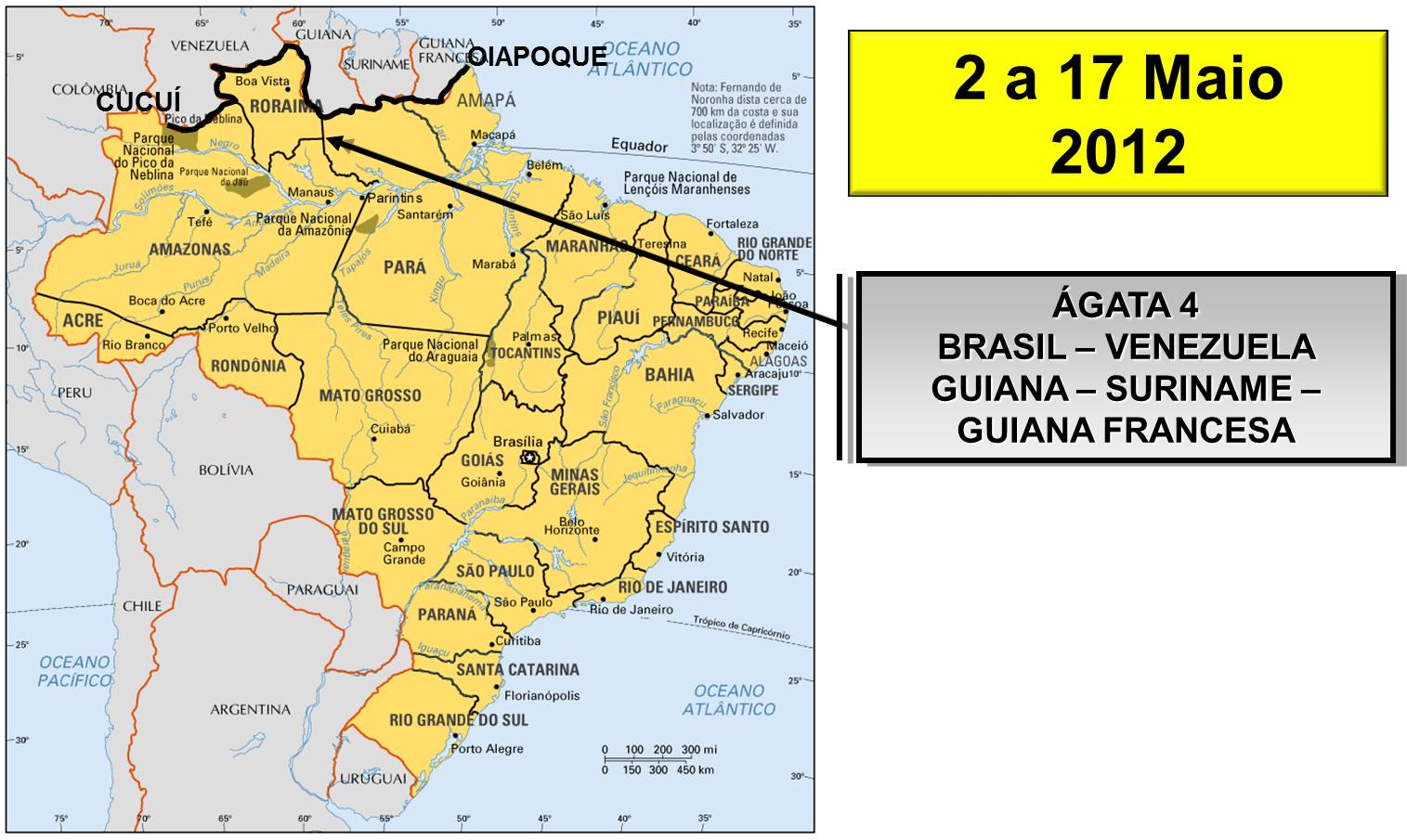 Este trabalho versa sobre a segurança e a defesa da fronteira Amazônica, em especial, durante a Operação Ágata 4 realizada entre os dias 02 e 17 de maio de 2012 na Amazônia setentrional. A operação, estruturada pelas diretrizes da Estratégia Nacional de Defesa e pelo Plano Estratégico de Fronteiras, ocorreu na fronteira entre o Brasil e os seguintes países: Guiana, Guiana Francesa, Suriname e Venezuela. Entre os objetivos do Governo Federal, das Forças Armadas e dos órgãos de segurança pública estava a contenção dos ilícitos transnacionais na região. A Amazônia possui pluralidade de contextos e é área prioritária para o Estado Brasileiro.Downloads